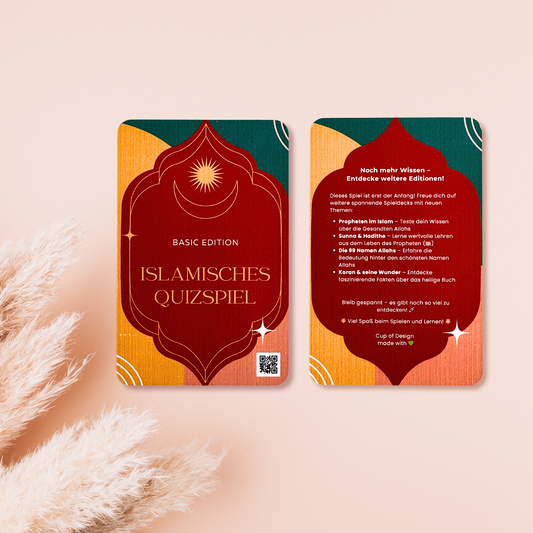 Entdecke unsere islamischen Quizspiele und teste dein Wissen auf spielerische Weise! Egal ob alleine, mit Familie oder Freunden – unsere lehrreichen und unterhaltsamen Quizkarten helfen dir, dein Wissen über den Islam, seine Geschichte und seine Werte zu vertiefen.
